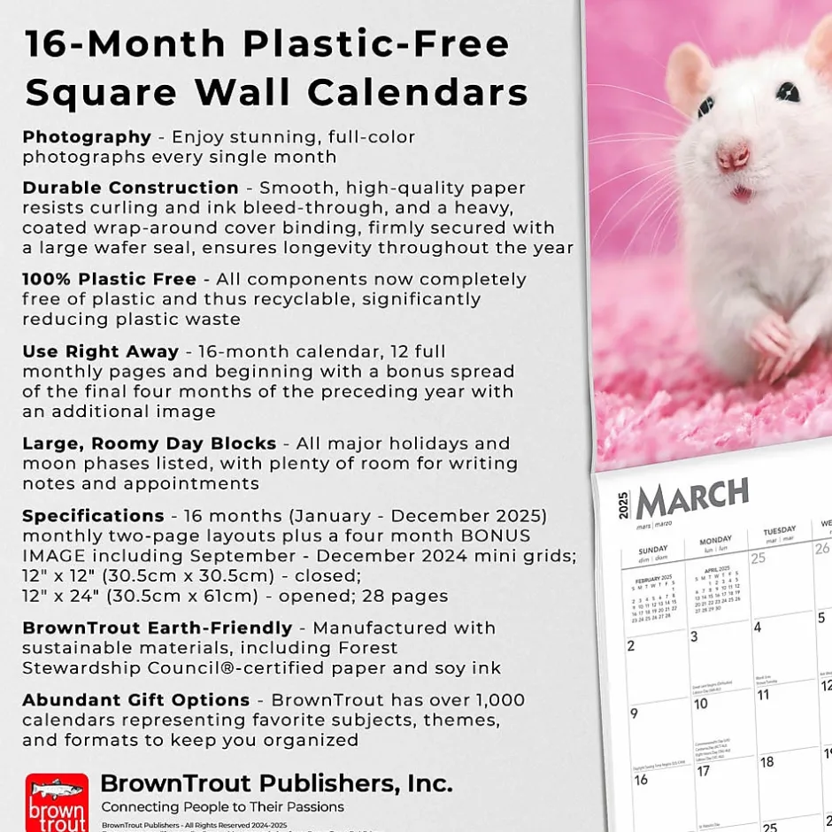 - Abundant Gift Options – BrownTrout has over 1,000 calendars representing favorite subjects, themes, and formats to keep you organized