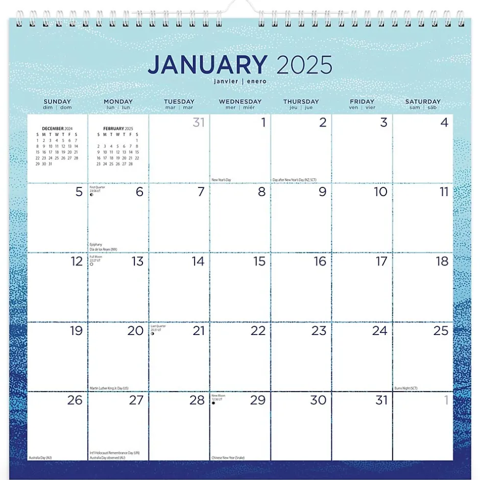 - Large, Roomy Day Blocks – All major holidays and moon phases listed, with plenty of room for writing notes and appointments