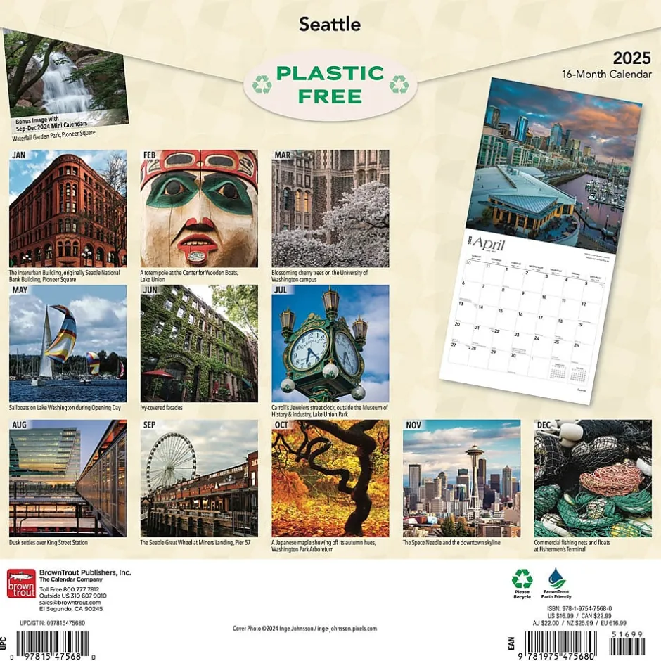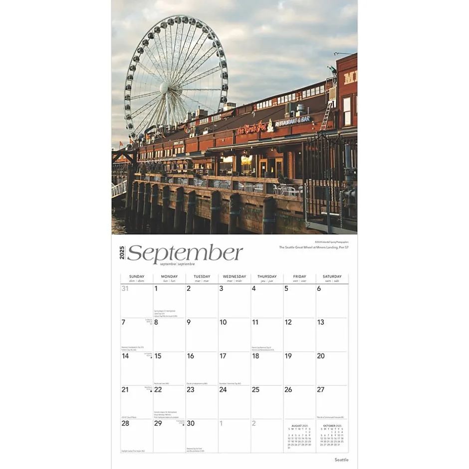 Situated between Puget Sound and the Cascade Mountains, Seattle is a vision of blues and greens. With its vigorous arts scene, cafes, high-tech businesses, and outdoor life, Seattle is a vibrant Northwest city bursting with energy. The futuristic Space Needle, built for the 1962 World’s Fair, dominates the Emerald City’s impressive skyline. The photographs in this calendar show some of Seattle’s hidden treasures as well as its famous landmarks.