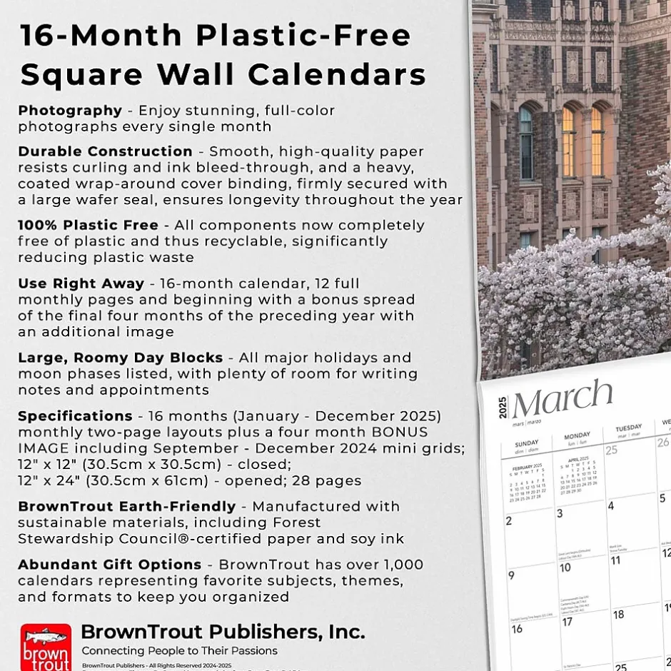 - Abundant Gift Options – BrownTrout has over 1,000 calendars representing favorite subjects, themes, and formats to keep you organized