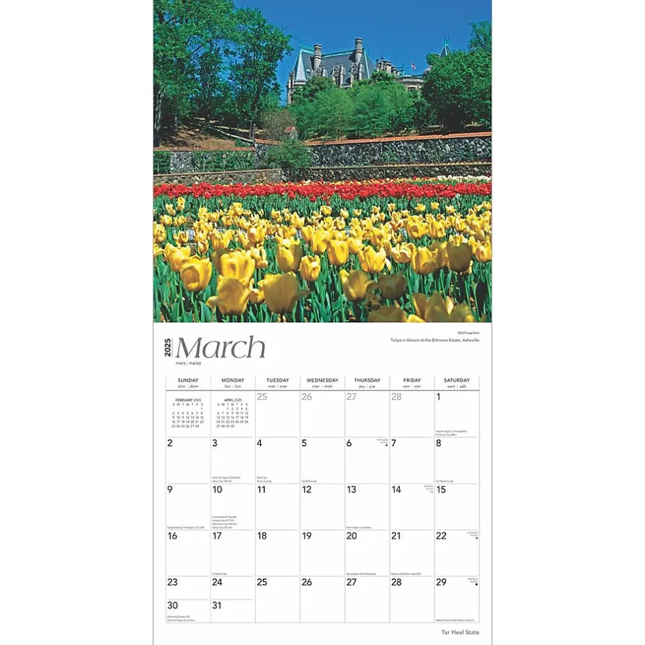 North Carolina is a state filled with natural beauty, thriving cities, and a deep history as one of the original 13 colonies. Virtually visit sites like the Outer Banks, the Blue Ridge Parkway, and Cape Hatteras. Visit landmarks in the bustling cities of Raleigh, Charlotte, Wilmington, and more. Take a tour of the Tar Heel State with this colorful calendar.