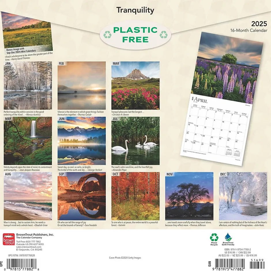 Our fast-paced world often makes it difficult to find moments of calm. With beautiful images, this Tranquility calendar offers a picturesque walk through near and distant locales where quiet moments of self-reflection are abundant.