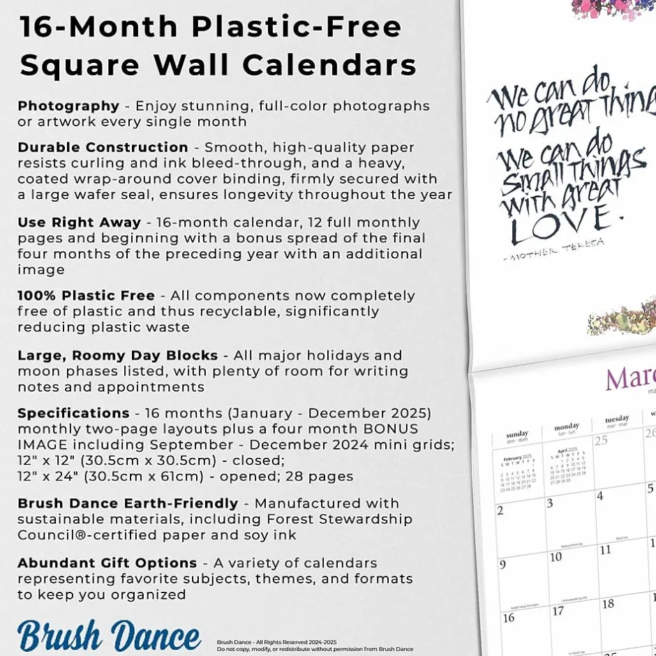 - Brush Dance Earth-Friendly – Manufactured with sustainable materials, including Forest Stewardship Council®-certified paper and soy ink