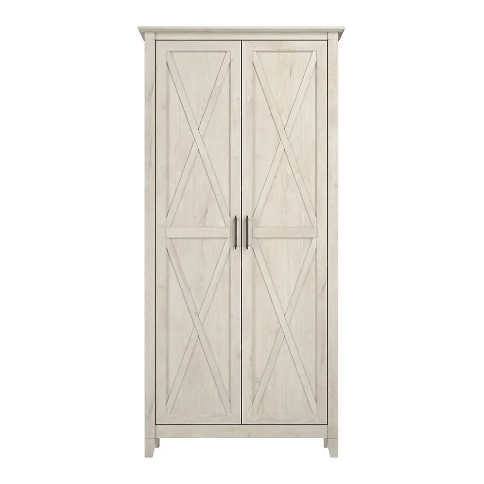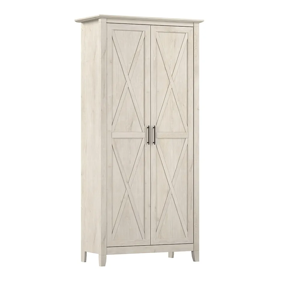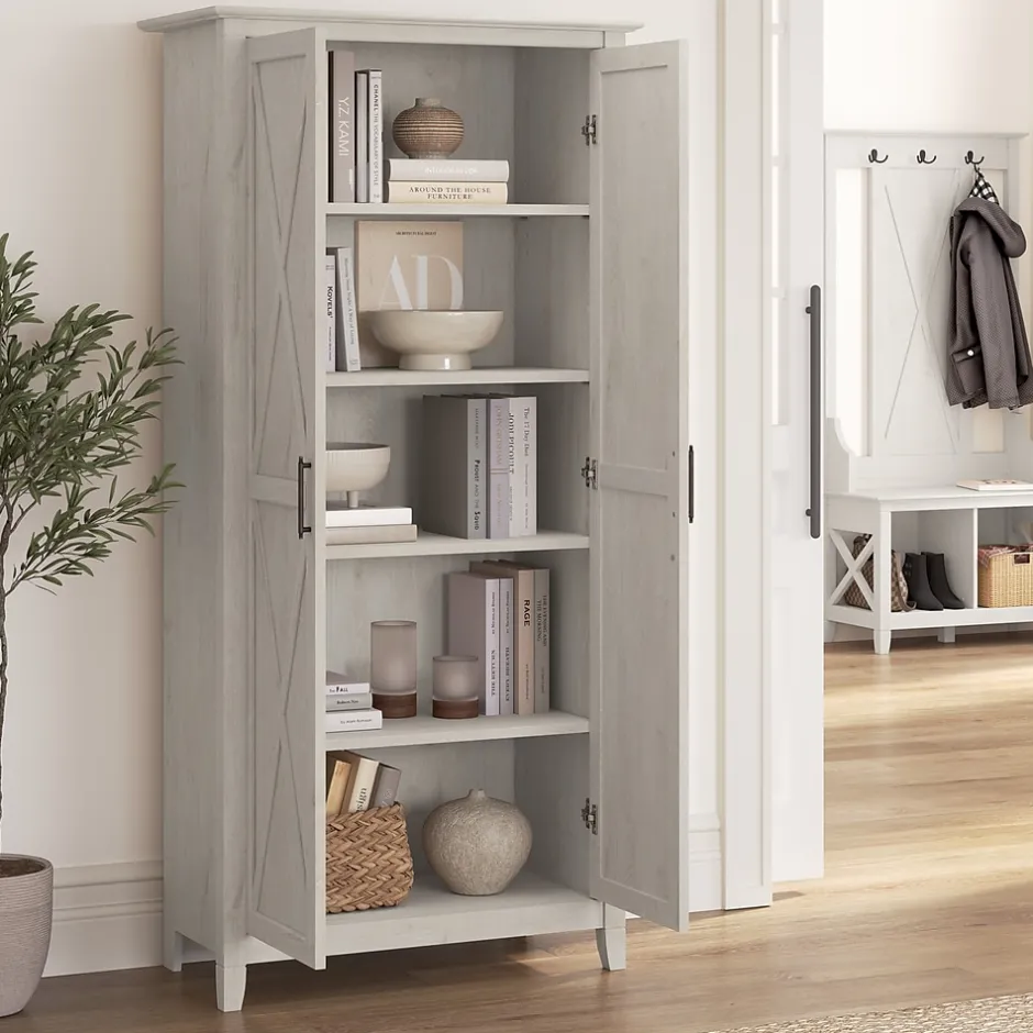 The Bush Furniture Key West Tall Storage Cabinet with Doors and Shelves offers an organization solution that brings a touch of casual style to any residential space. Featuring a design that’s as versatile as it is practical, this 2 door farmhouse cabinet provides an ideal way to store important work materials, a collection of books or other media, miscellaneous household items and more. Two shelves are fixed for stability while three can be raised or lowered to accommodate items of various sizes. Each shelf supports up to 25 pounds, so storing larger materials and equipment is never a problem. The stable design also includes wall attachment hardware for family-friendly safety in any home office or living space. This tall accent cabinet with doors has been meticulously tested to meet or exceed industry standards for safety and performance and is backed by a 1 Year Manufacturer’s Warranty.
