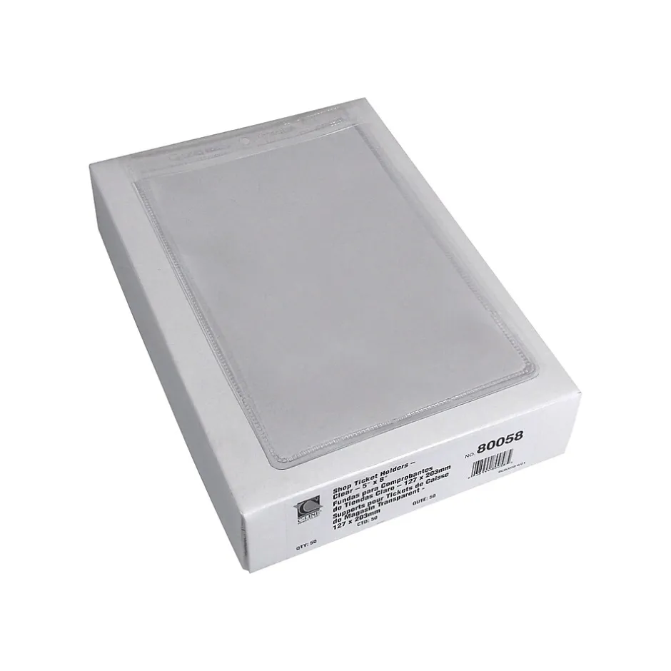 Keep important product information attached to your inventory items with these C-Line job ticket holders. Durable vinyl construction and welded non-rip seams withstand heavy use to keep these holders in great shape, while the clear design makes tickets easy to read. These C-Line job ticket holders feature punched hole at the top, so you can attach them to products or shelves.