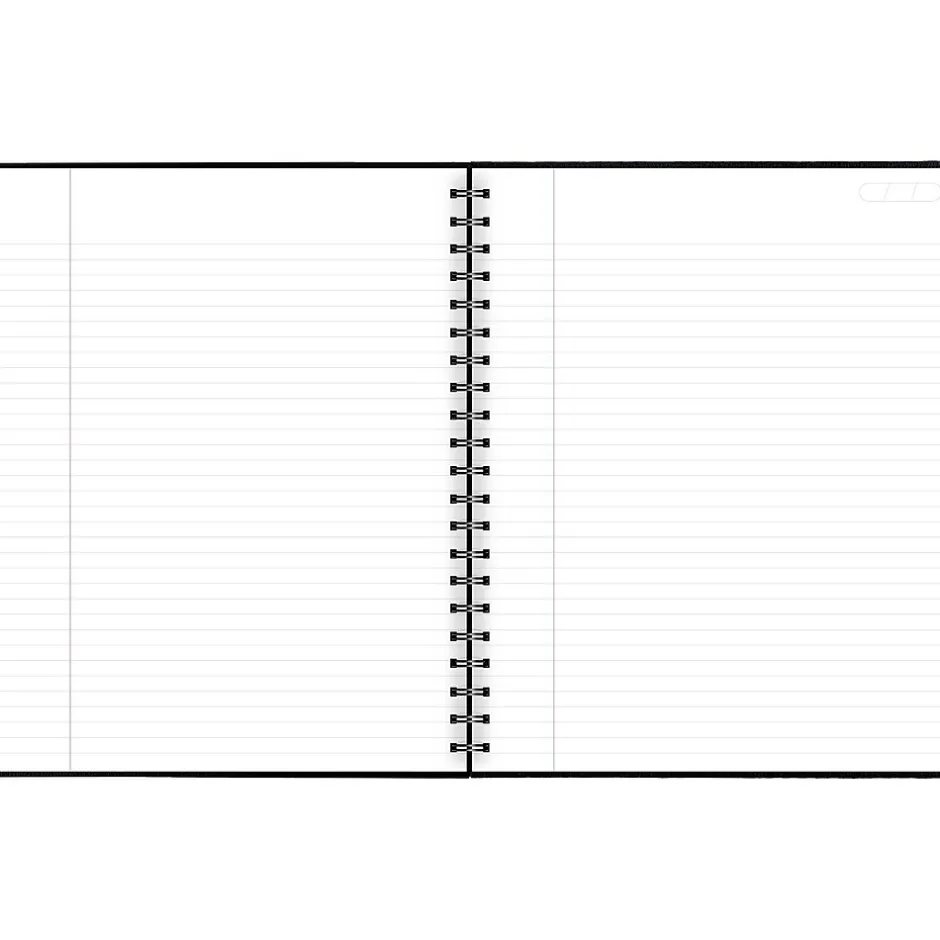 - Black, hardbound linen covers with twin wire binding protect notes and provide professional appeal. 8 7/8″ x 11″ page size