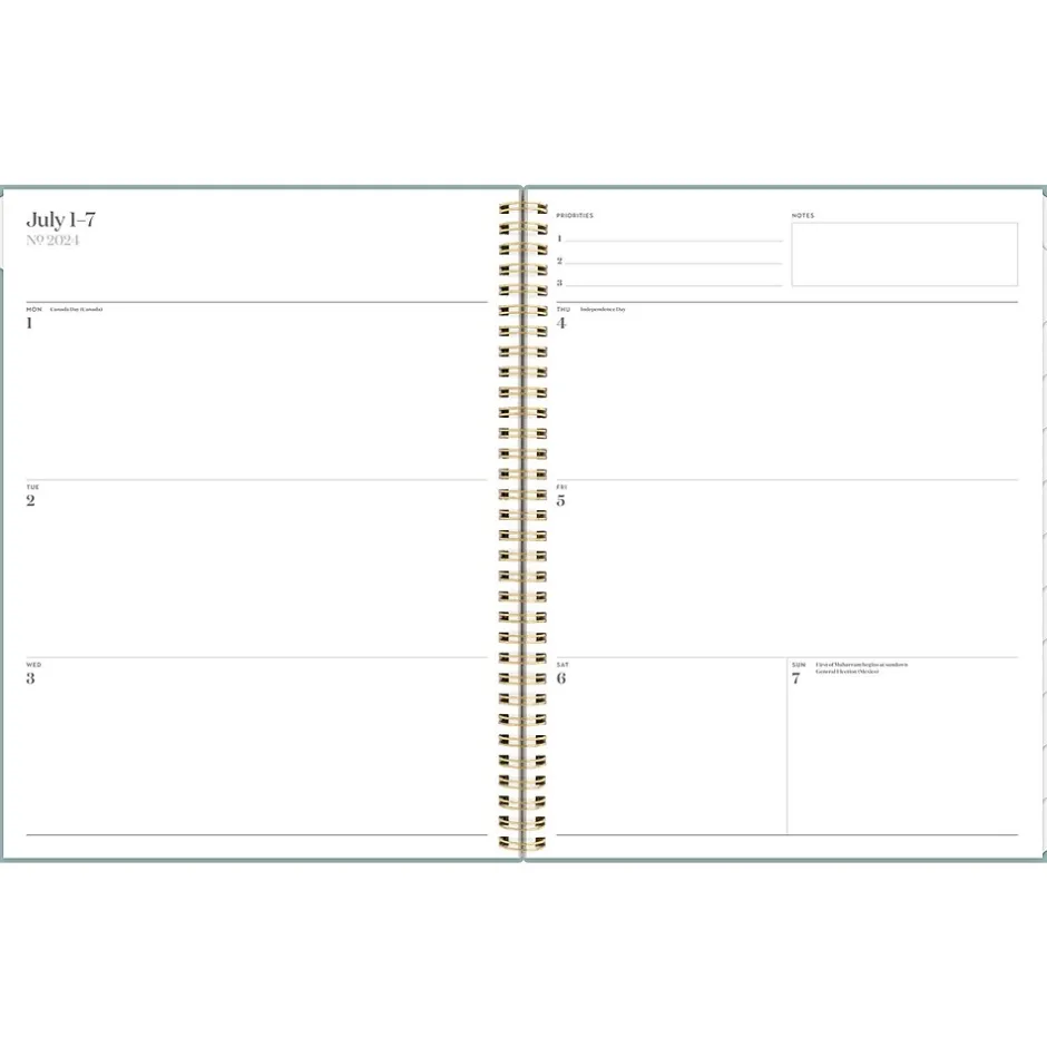 - Open weekly pages let you doodle, jot down ideas, and plan in the way that works best for you, and offer sections for notes and priorities; monthly spreads have unruled daily blocks with space for notes by week