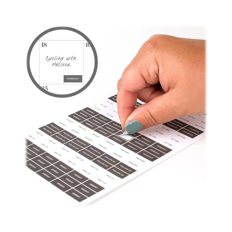 - Special sections include dot grid pages for ideas, habit tracking and more, note-taking pages, and a sticker sheet to help you label your plans