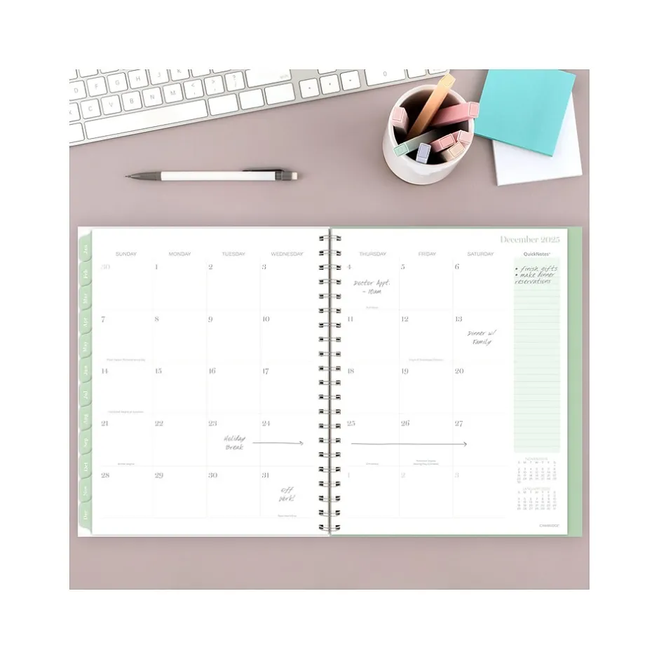 Embrace the flow this year. The Cambridge Ombre weekly and monthly planner makes it easy to track family events, work deadlines, and everything in between. Start fresh each week. Unruled daily sections help you stay on track all year long. The planner covers 12 months from January 2025 to December 2025.