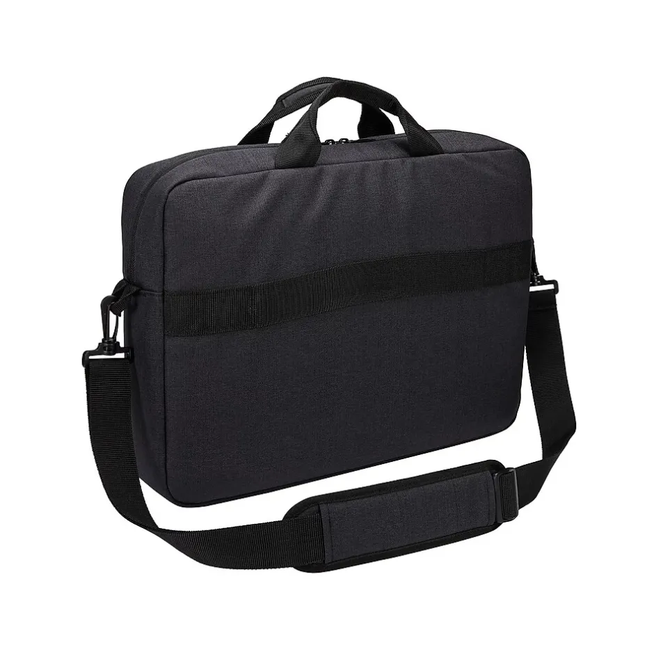 Contemporary design and relevant features combine to deliver a stylish attache perfect for work or school. The Case Logic Huxton attache protects your 15.6″ laptop and tablet. It features multiple zippered pockets to store accessories, a removable shoulder strap that adjusts for a custom fit, and a luggage strap that securely attaches this slim case to most rolling luggage. Its durable polyester material withstands your ever-changing schedule. Features padded carry handles for comfortable transportation.