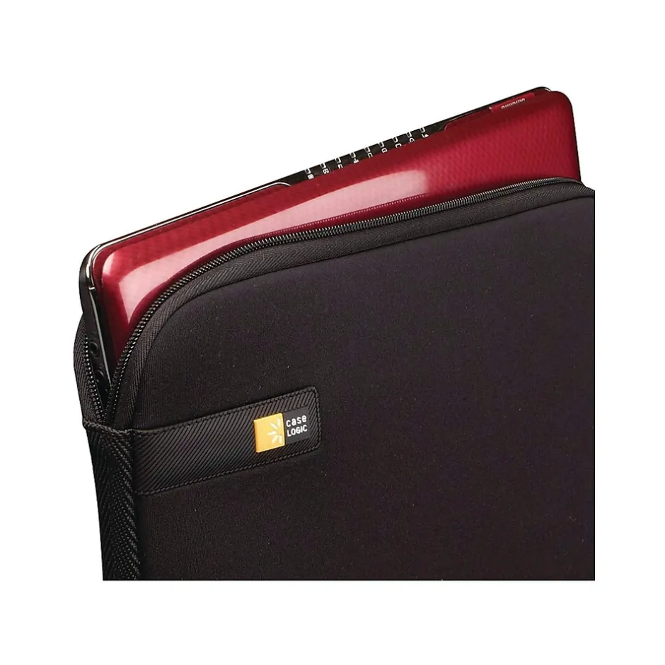 Tuck your laptop away in this Case Logic 14-inch EVA foam laptop sleeve. Impact foam padding creates a protective barrier against accidental drops and bumps, while the zippered closure keeps your device neatly stored inside. Woven webbing along the sides add a professional finishing touch. With its slim design, this Case Logic 14-inch EVA foam laptop sleeve slips into a carry-on or suitcase for business travel.
