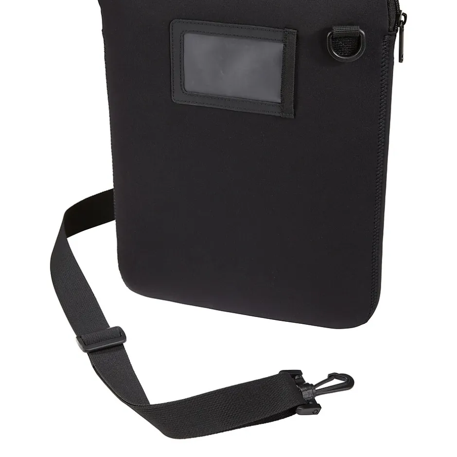 - Durable neoprene sleeve cushions and protects your laptop