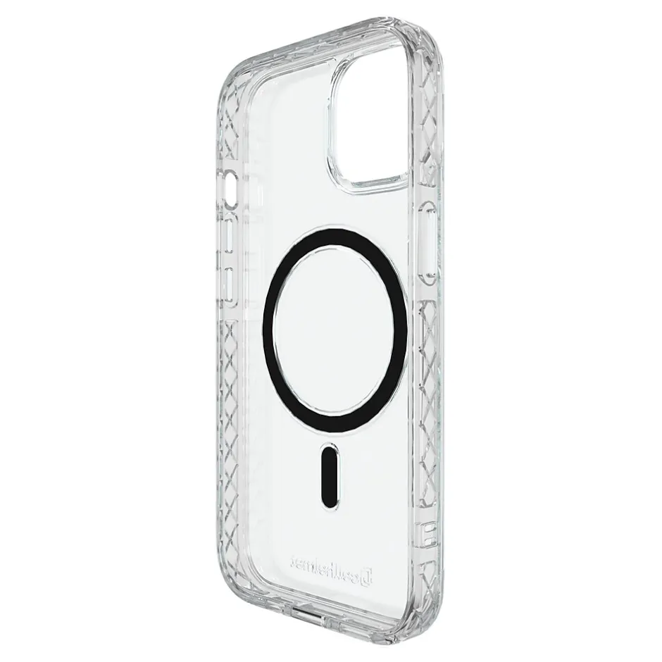 The cellhelmet Magnitude Series in Crystal Clear provides ideal security for your iPhone 15. It’s also MagSafe compatible, so you can connect appropriate accessories. It has a slim design and is also 13 ft. third-party drop-test certified. Magnitude Series has an integrated tether hook and it’s also constructed of 50% recycled TPU material. It has patent-pending absorption technology called Cross Diffuse. Overall, it’s an all-around innovative, yet wonderful cell phone case experience.