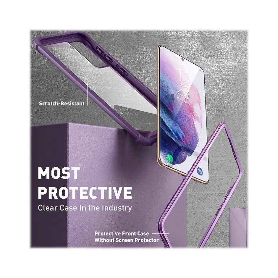 This i-Blason Ares purple rugged case offers full-body protection against dust, dirt, and drops for your Samsung Galaxy S21 Plus. It features impact-resistant bumpers and port covers and is compatible with wireless charging.