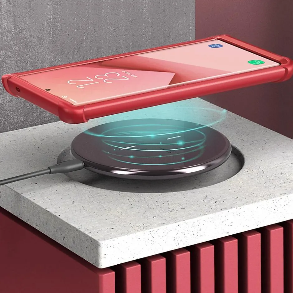 This i-Blason Ares red case offers full-body protection from dust, dirt, and drops. It features impact-resistant bumpers and port covers and is compatible with wireless charging.
