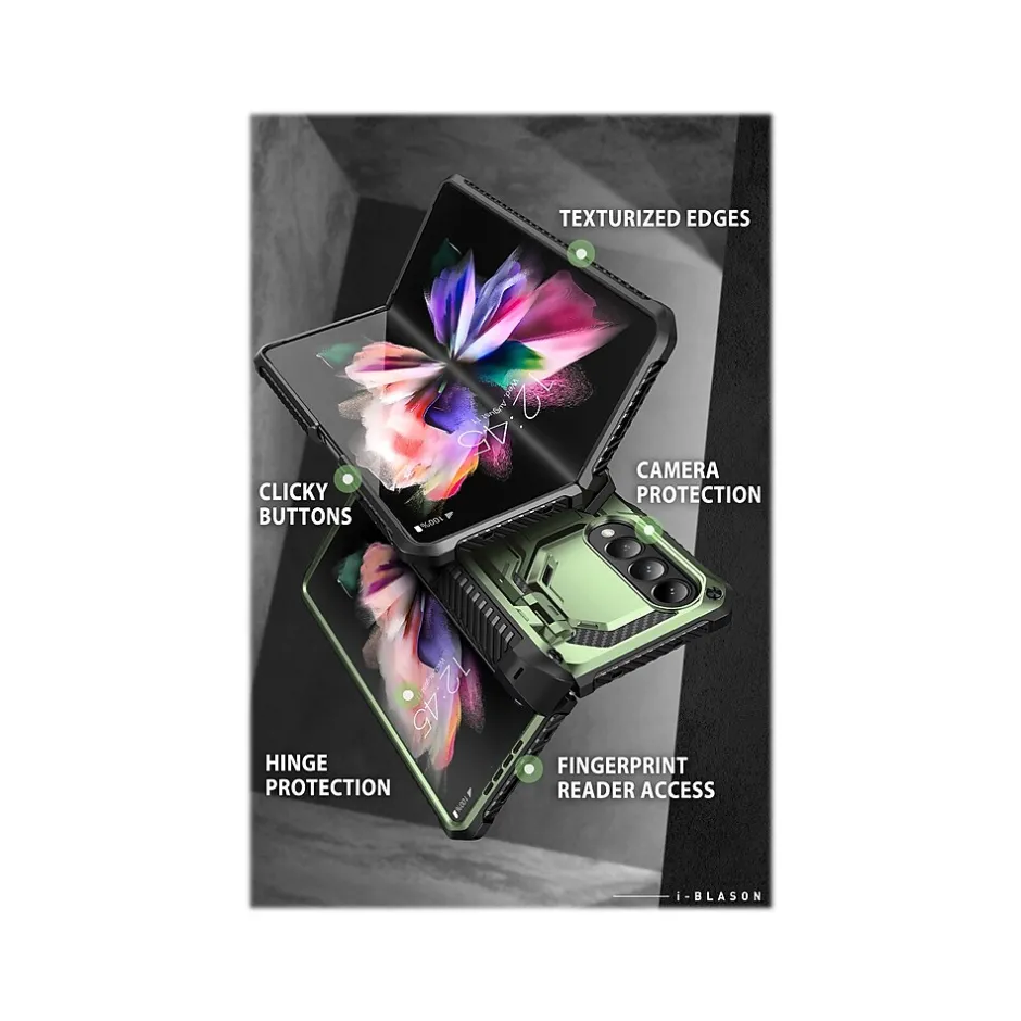 The i-Blason Armorbox rugged case ensures 360-degree full-body protection for your Samsung Galaxy Z Fold4 5G (2022). Precise cutouts allow seamless access to all ports and features. Exceeds military drop standards: drop-tested at 48″ height, 26 times.