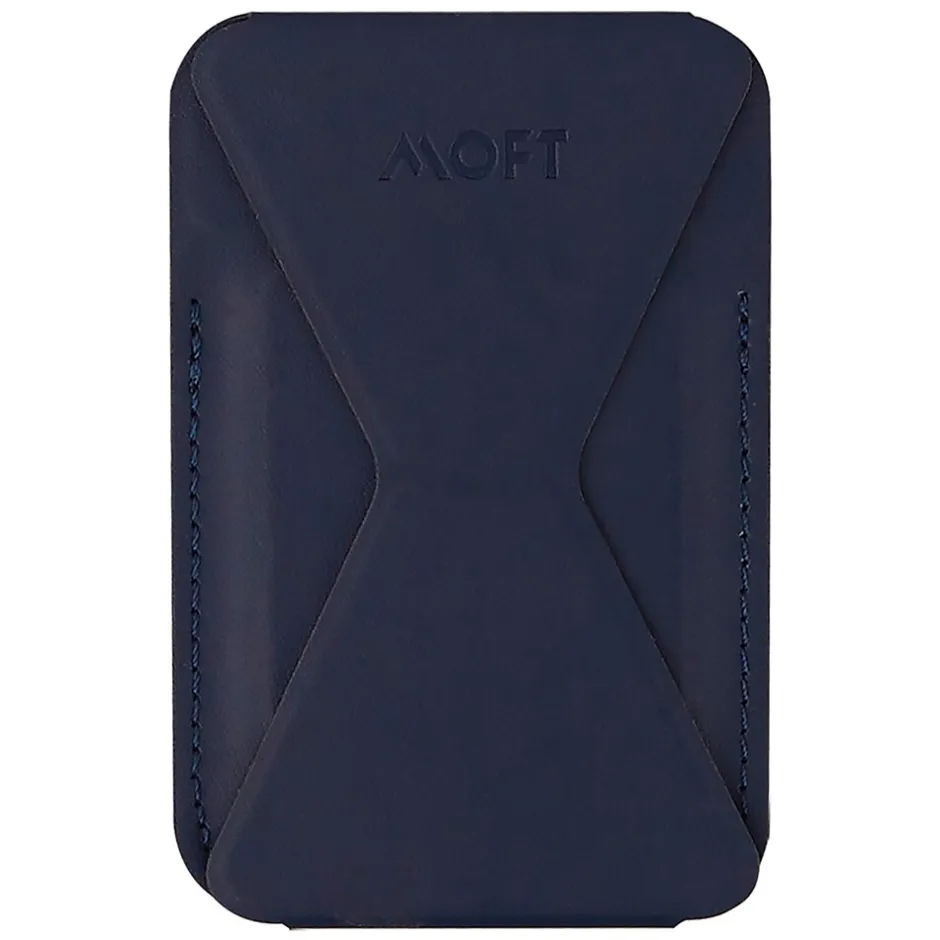 The MOFT Snap-on Phone Stand and Wallet for iPhone 12 and 13 Series in Oxford Blue employs dual magnets to attach securely to iPhone 12 series and beyond. The fold-design allows for intuitive and flexible usage. Simply snap it on, stand it up, and fold it back into place. At 0.2 in. (5 mm), it’s extremely slim but has the ability to hold up to 3 cards for your everyday carry needs. This also allows you to securely hide and easily access your cards without the need to snap it off your phone. It features 3 viewing modes which enable you to look at your phone screen in the most comfortable way, whether you’re browsing the web in portrait, streaming in landscape or having a Zoom meeting in floating mode. Experience your iPhone hands-free from every corner of your home with MOFT’s wall sticker pads which can attach on any surface, like a wall or fridge, to transform your phone into an exercise, bath time, or cooking companion. It’s also wireless charger-friendly: just sandwich the wireless charger pad between the phone and stand for charging.