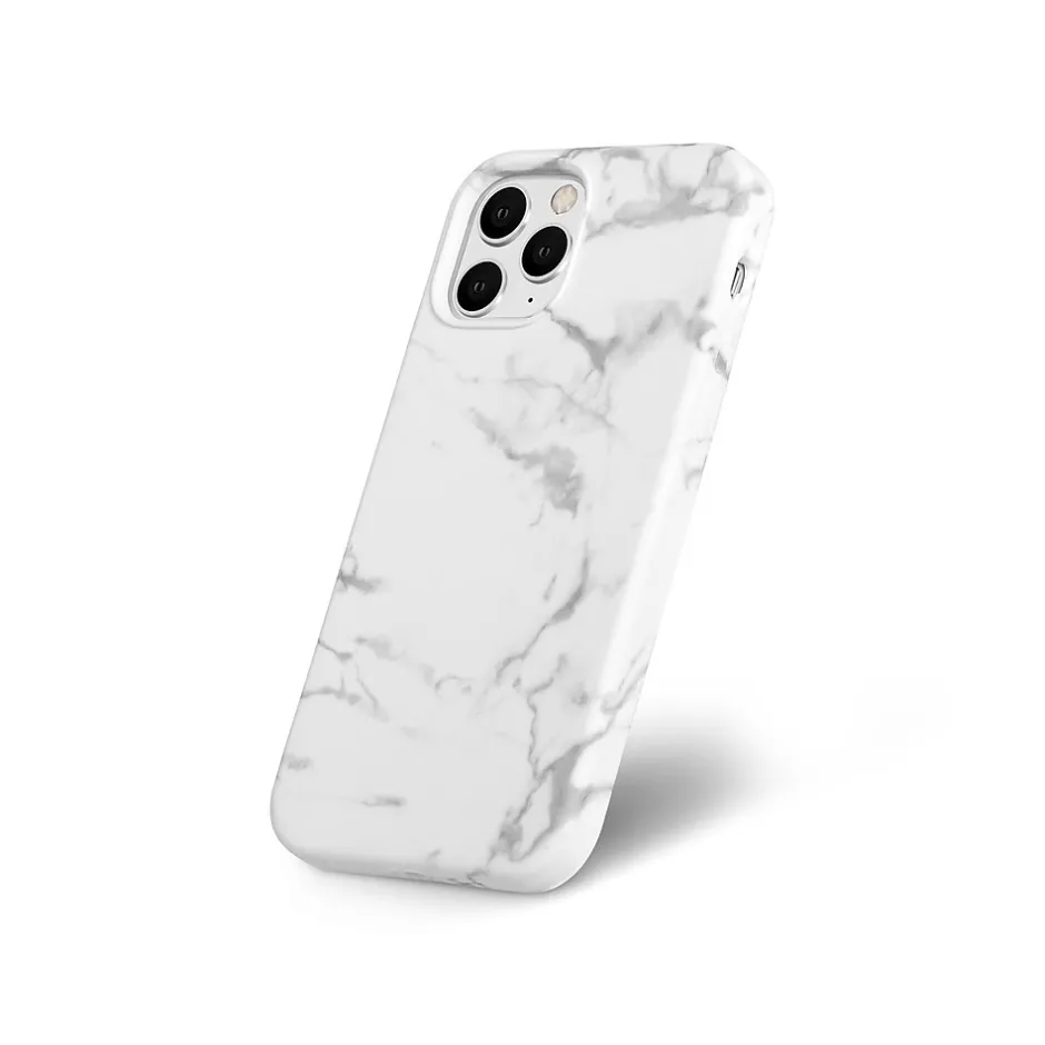 - Made of high-quality silicone for durability in a white marble design