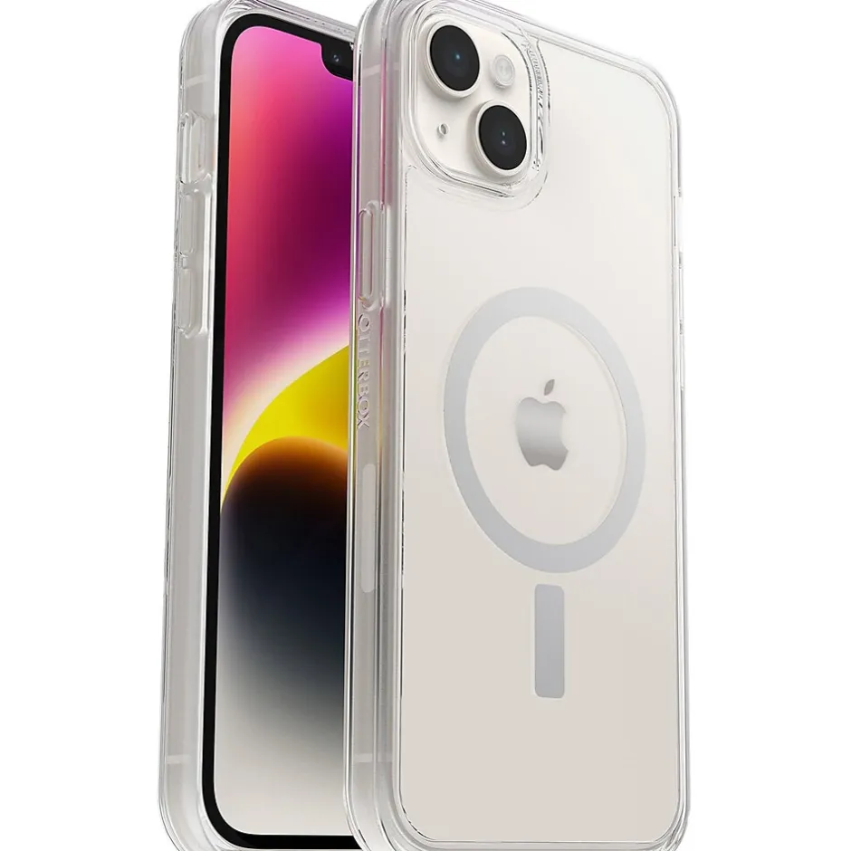 This OtterBox Symmetry Series Plus iPhone 14 Plus clear case shows off your iPhone and is designed for seamless interaction with MagSafe. The all-new Stay Clear formula preserves your case’s crystal transparency. All of your phone’s features and functions work flawlessly, while durable protection shields against drops, bumps, and fumbles.