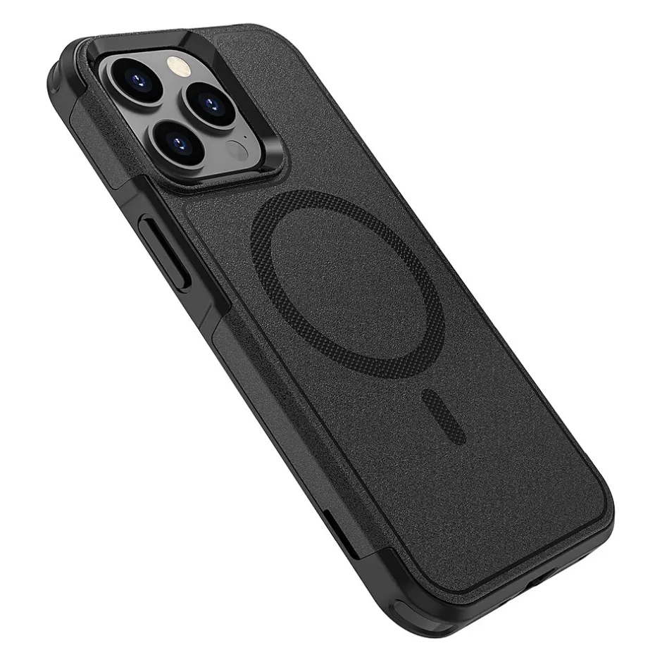 Improve the durability of your Apple iPhone 15 Pro Max with this black once-piece SaharaCase Armor Series case with MagSafe compatibility.