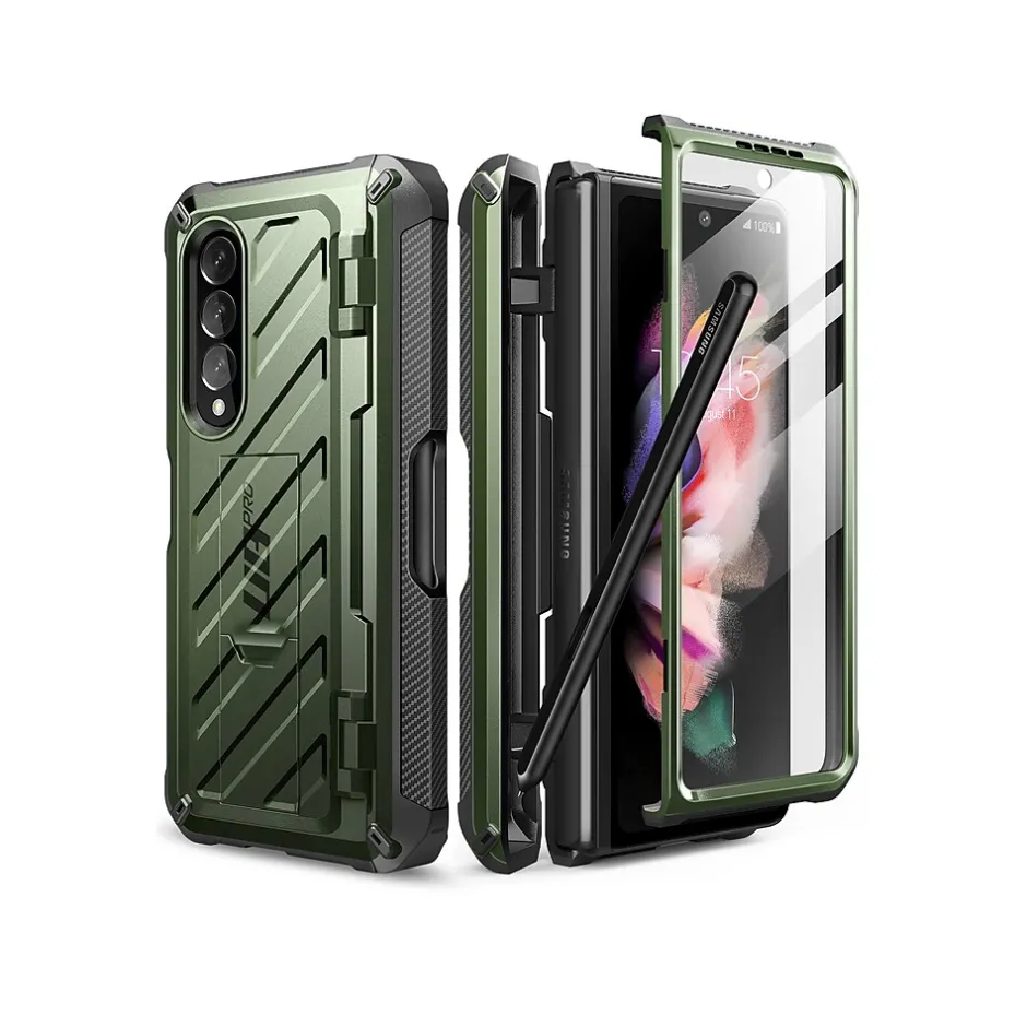 The SUPCASE Unicorn Beetle PRO rugged case ensures 360-degree full-body protection for your Samsung Galaxy Z Fold4 (2022). Features a built-in screen protector. Hinge protection doubles as S Pen holder. Exceeds military drop standards: drop-tested at 48″ height, 26 times.