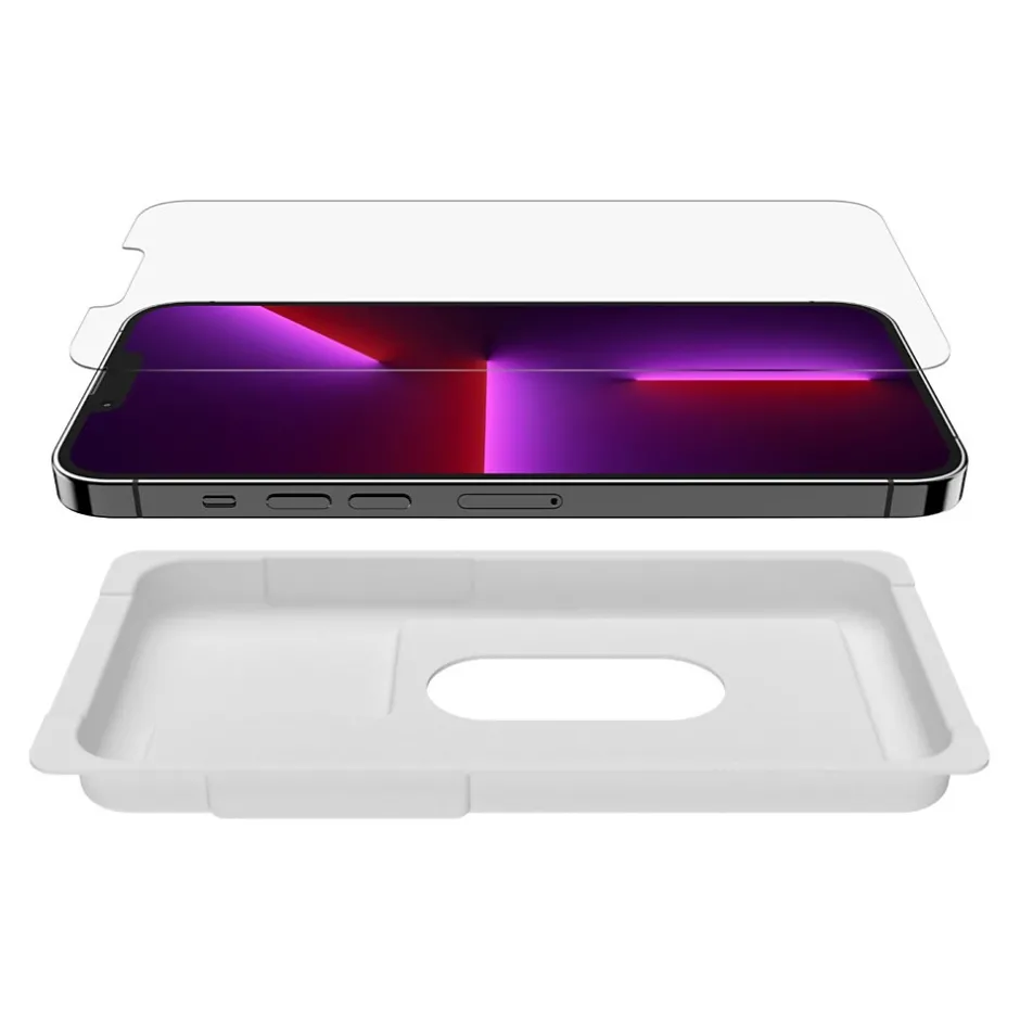 This Belkin SCREENFORCE UltraGlass double ion exchange glass screen protector made for iPhone 13 Pro Max delivers ultimate durability and resilience. The glass contains an antimicrobial agent to protect the product from microbial growth, without sacrificing touch-screen response or clarity.