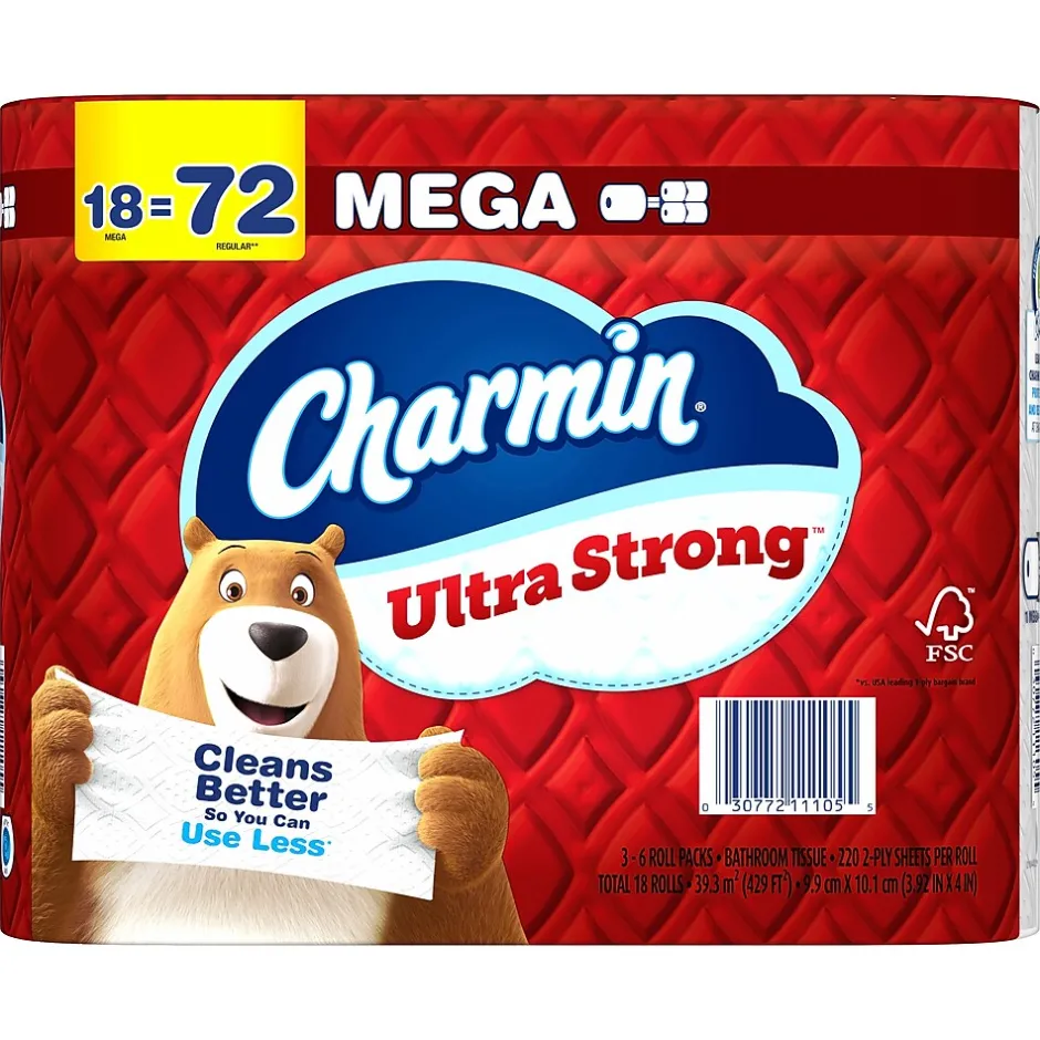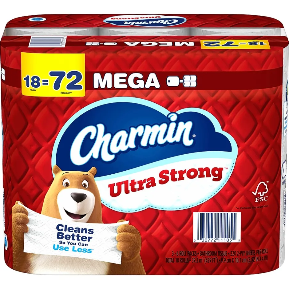 - Pack contains 18 Mega Rolls (220 Sheets Per Roll) of Charmin Ultra Strong Toilet Paper