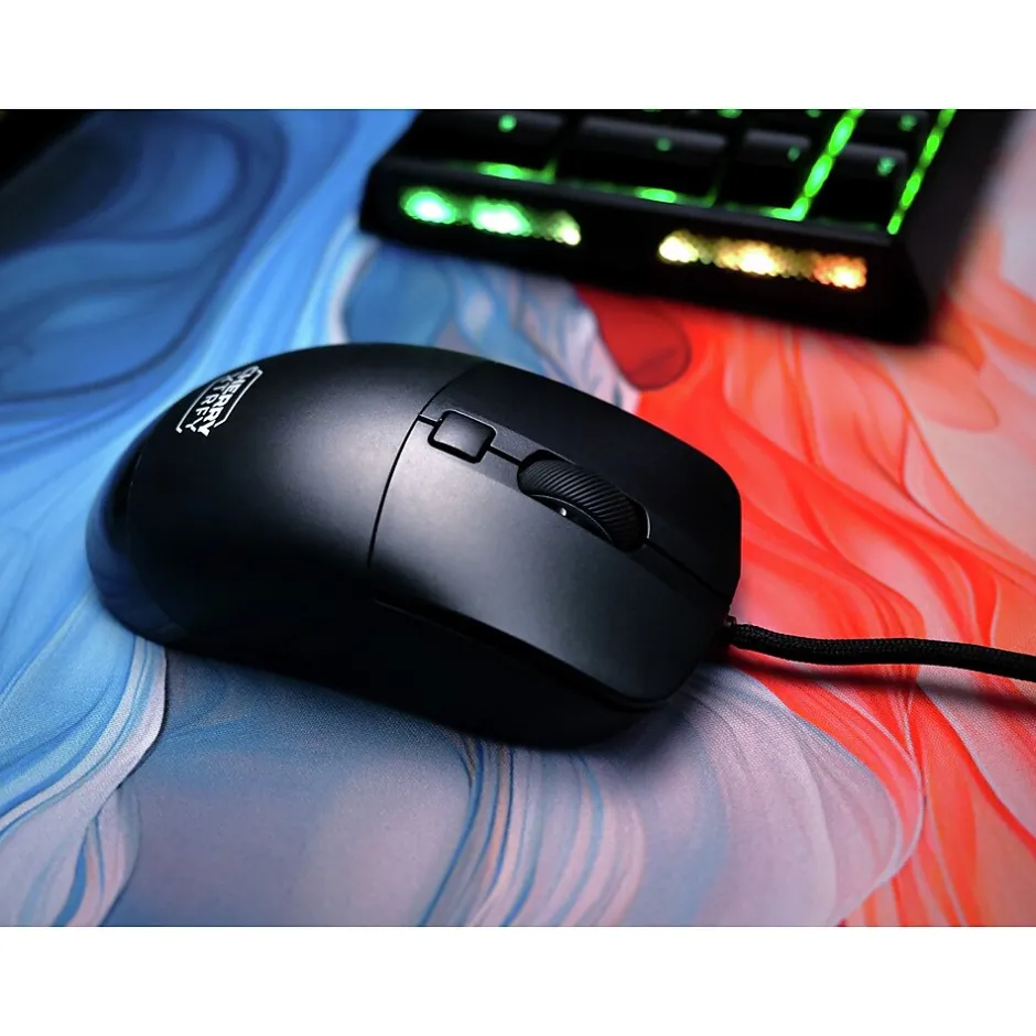 - This wired gaming mouse provides comfortable and precise control for various grip styles.