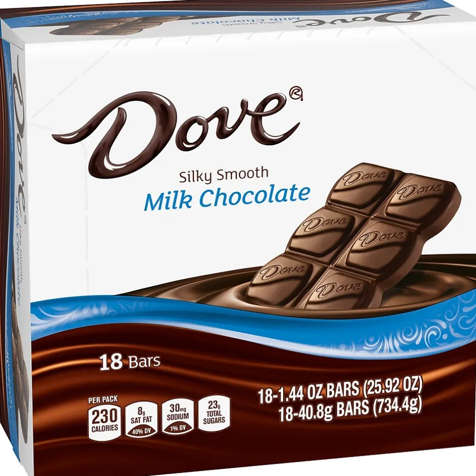 - Bulk box of DOVE Milk Chocolate Candy bars