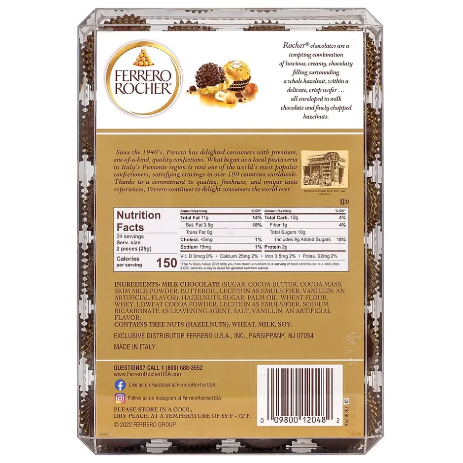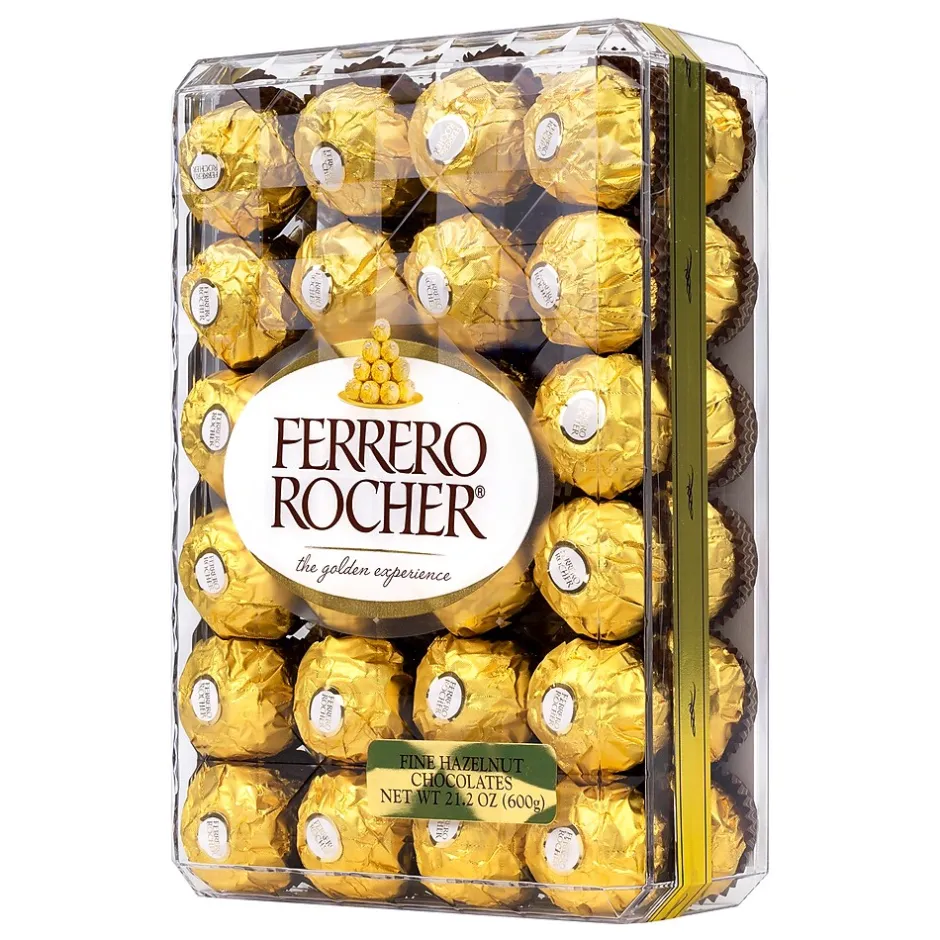 - A 48-Piece gift box of Ferrero Rocher Hazelnut Chocolates