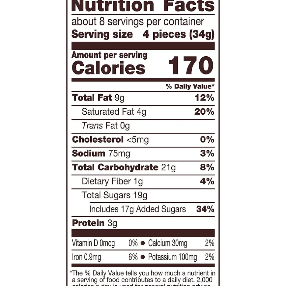 | Calories per Serving What is the suggested serving size of this item given in: Numeric Value + Item Type + “per Serving”, i.e. 10 Crackers per Serving. | 4 pieces per serving |