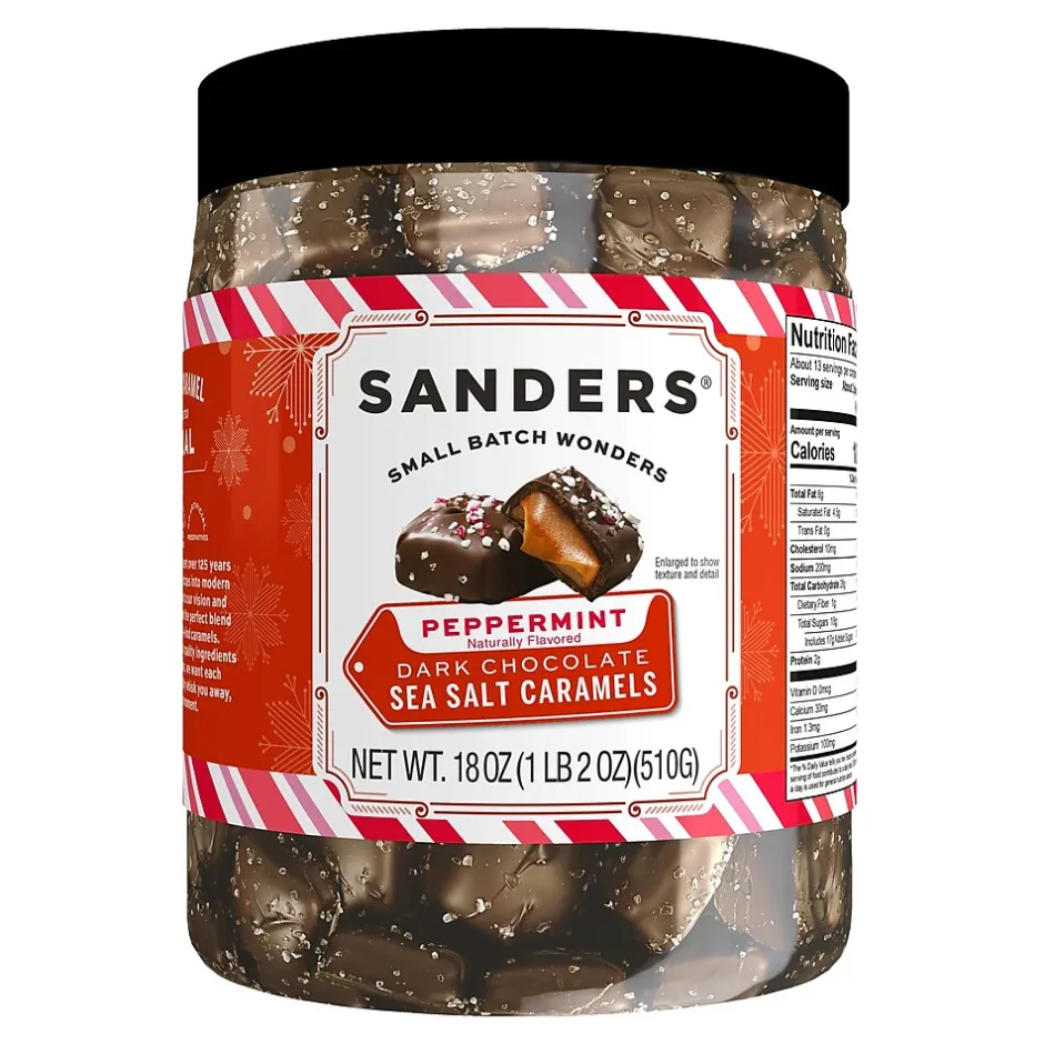 - Kettle-cooked caramel in a seasonal-exclusive Peppermint flavor draped in premium dark chocolate and sprinkled with coarse sea salt