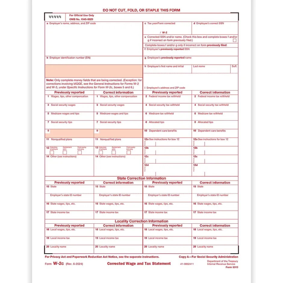 Use form W-2c to correct errors on forms W-2, W-2AS, W-2CM, W-2GU, W-2VI, or W-2c filed with the SSA. Also, use form W-2c to provide corrected forms W-2, W-2AS, W-2CM, W-2GU, W-2VI, or W-2c to employees.