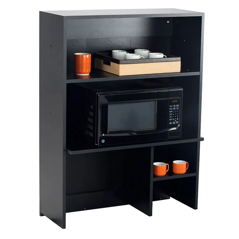 Modular, multiuse hutch for storing appliances and related items in workspaces, breakrooms, homes and classrooms. Constructed of ¾” thick TFM laminate that is heat, moisture, stain and abrasion resistant. Hutch features 5 open storage compartments for storage and display. Ships Ready-to-Assemble