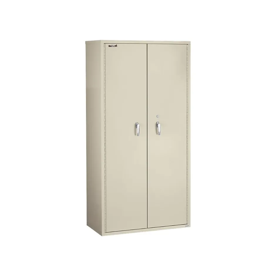 Safeguard important documents from fire and theft with this storage cabinet. The Medeco security lock resists picking and drilling, and the keys can only be duplicated through FireKing. Four shelves are adjustable, and each can hold up to 160 pounds. The powder-coated finish resists scratches and dents. This FireKing storage cabinet internal temperature stays below 350 degrees F for at least one hour in a fire.