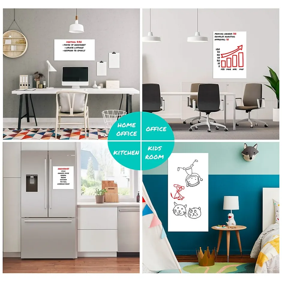 - Easy application and removal: The premium adhesive whiteboard is simple to apply, reposition, and remove. It sticks securely to various surfaces and leaves no residue behind when taken down