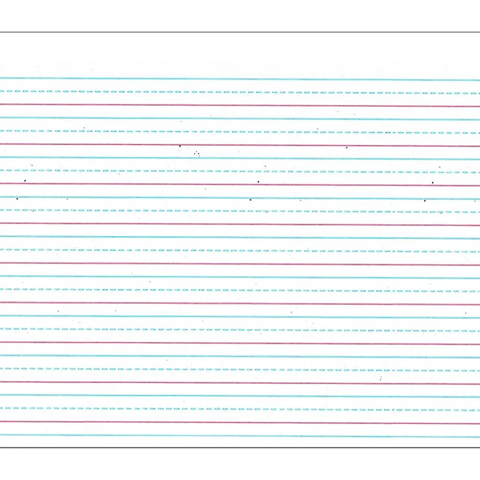 Clean white sulphite paper is printed with a red baseline and a broken blue midline to make it easy for second-grade students to find the headline quickly and easily. Design features 1/2″ ruling the long way. Recyclable paper is printed on both sides.