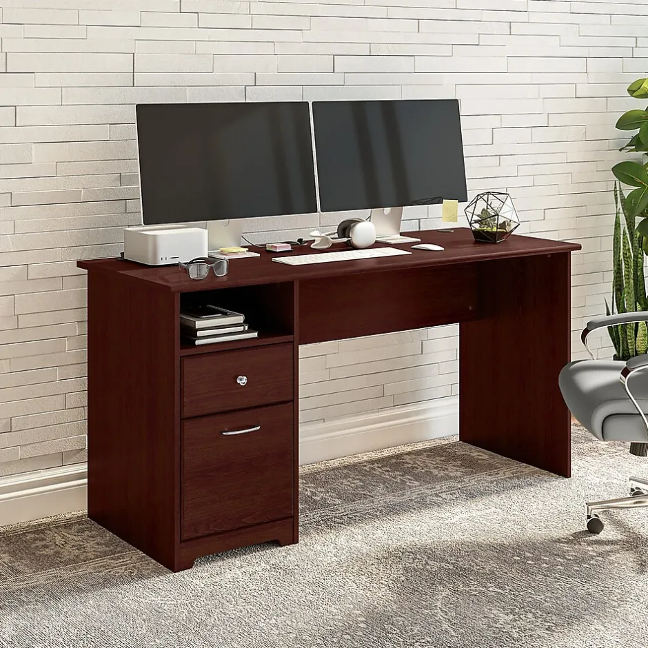 Create a stylish, functional and organized home office with the Bush Furniture Cabot 60W Computer Desk with Drawers. The spacious work surface allows you to spread out with your laptop, papers, printer and more with room to spare. Store files and supplies in the included drawers and open cubby shelf, designed for quick and easy access. A smooth full-extension drawer opens effortlessly on reliable ball bearing slides so you’ll have no trouble reaching your letter or legal-size files. Use the Computer Desk on its own or add a coordinating Return (sold separately) to create an L shaped layout. Backed by a Bush Furniture 1 Year Manufacturer’s Warranty, the Desk with Drawers meets ANSI/SOHO quality test standards for safety and performance.