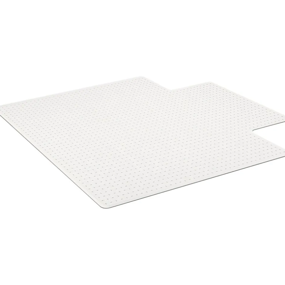Extend the life of your medium-pile carpet (up to 3/4″ thick including padding depth) by protecting against chair caster wear and tear. A perfect addition to your workspace, this Staples chair mat provides a smooth surface that enhances ergonomic comfort by allowing your rolling office chair to move freely. Easy to handle, this chair mat features rounded AnchorBar cleats (studs) that hold your mat in place and are gentle on carpets and fingers (no sharp spikes). Made with durable vinyl that is GREENGUARD Gold certified for low chemical emissions to promote a healthier workspace. Designed for use on carpeted surfaces only, do not use on hard floors.