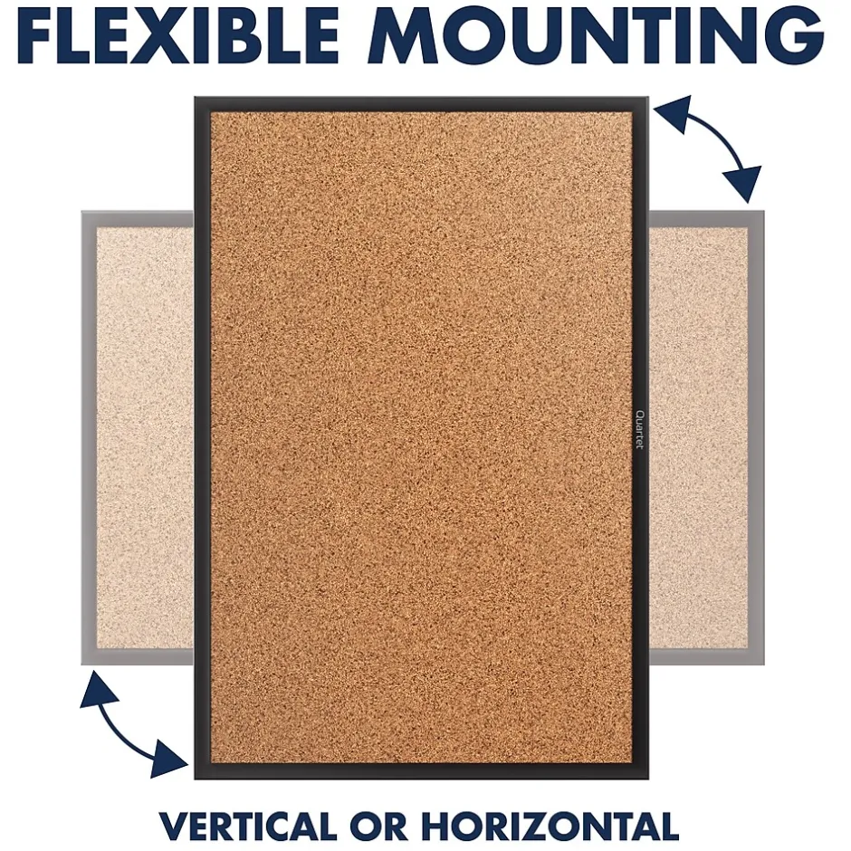 Outfit your office, cubicle or break room with this Quartet cork bulletin board. Self-healing cork provides long-lasting durability, while the black-finish aluminum frame adds a professional touch. The included mounting hardware allows for fast, easy installation. With a durable backing, this Quartet cork bulletin board holds pins securely so your notes and memos stay neatly in place.