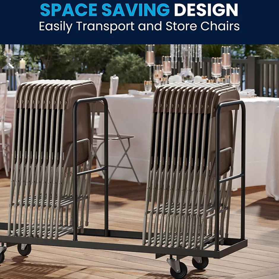 Commercial-grade plastic folding chairs designed to be lightweight but durable. This product is engineered and built with premium materials that will withstand heavy duty use for event, business and home usage. These folding chairs will nest easily to stack 50 high from the floor and feature a textured contoured plastic seat for the highest level of comfort and security. With a variety of color options you can choose what would best pair with your event needs. This is a commercial-grade on-demand seating solution convenient for weddings, school functions, barbecues, game night, and catering events. Stay comfortable during social events with the gentle contour shaped seat and back. Folding chair highlights: – Ready-to-use with no assembly required – Hassle free stackable storage – Textured seat designed for maximum comfort and security – Floor caps to prevent surface and flooring damage – 650LB weight capacity These low-maintenance party event chairs wipe down easily after luncheons and stack neatly for storage or floor maintenance. Make a smart investment by purchasing multiple plastic folding chairs for your rental business, waiting room or corporate training rooms. Purchase our folding chair truck for quick and easy set up and take down.