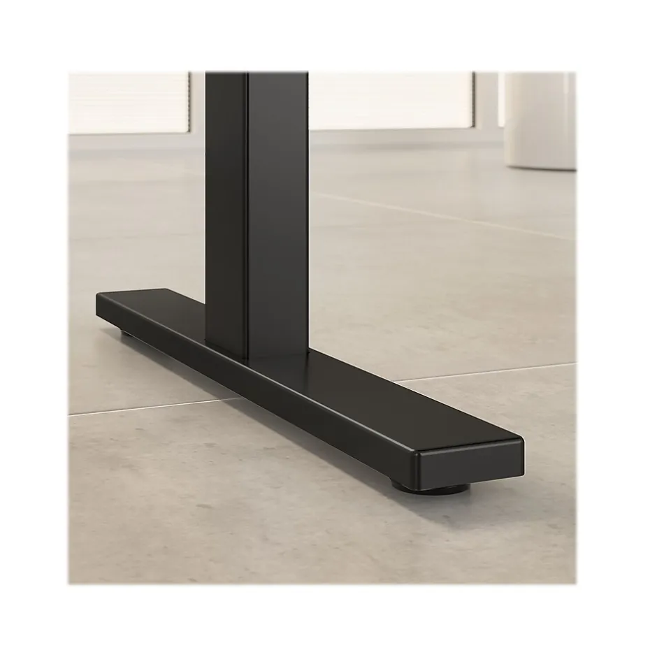 - Ergonomic desk uses quiet UL-listed electric motors; includes 10′ power cord plugs into a standard wall outlet