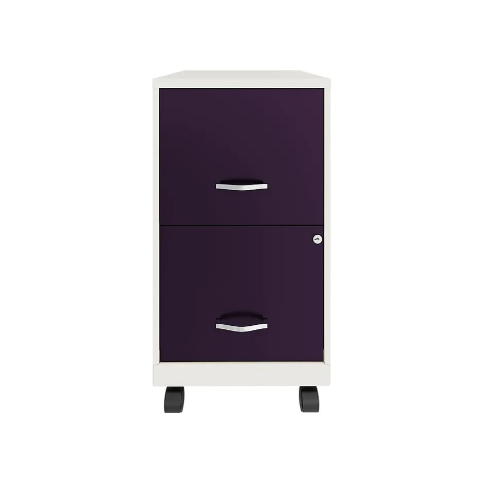 The Mobile Two Drawer Metal Vertical File Cabinet is designed for smaller professional offices or home office use. The cabinet features durable steel construction and a smart, efficient design that works well in small spaces, fitting easily under most work surfaces or office desks. Each drawer features high-sides to accommodate letter-sized hanging files. The drawers are also a perfect storage solution for other office essentials. Using a patented glide suspension, the drawer slides open and close smoothly with a three-quarter drawer extension to prevent tipping. In addition, you can keep your files and possessions secure with its locking drawers. The additional wheels that come with this file cabinet are both stylish and functional, which makes it easy to move around your home or office. The painted steel surface is non-porous and easy to clean. Bring storage and organization to your home or office with this stylish mobile two-drawer file cabinet. Your office supplies and files will always be organized and within reach.