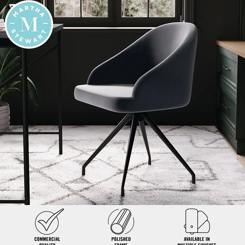 The Martha Stewart Sora Office Chair is a more sophisticated working version of the traditional accent chair. Stationary legs paired with a 360° swivel seat lend understated elegance to your work space. This velvet upholstered desk chair features a timeless oil rubbed bronze frame and a gently contoured backrest to keep you comfortable throughout your workday. Assembly is easy with the included tools and step-by-step instructions.