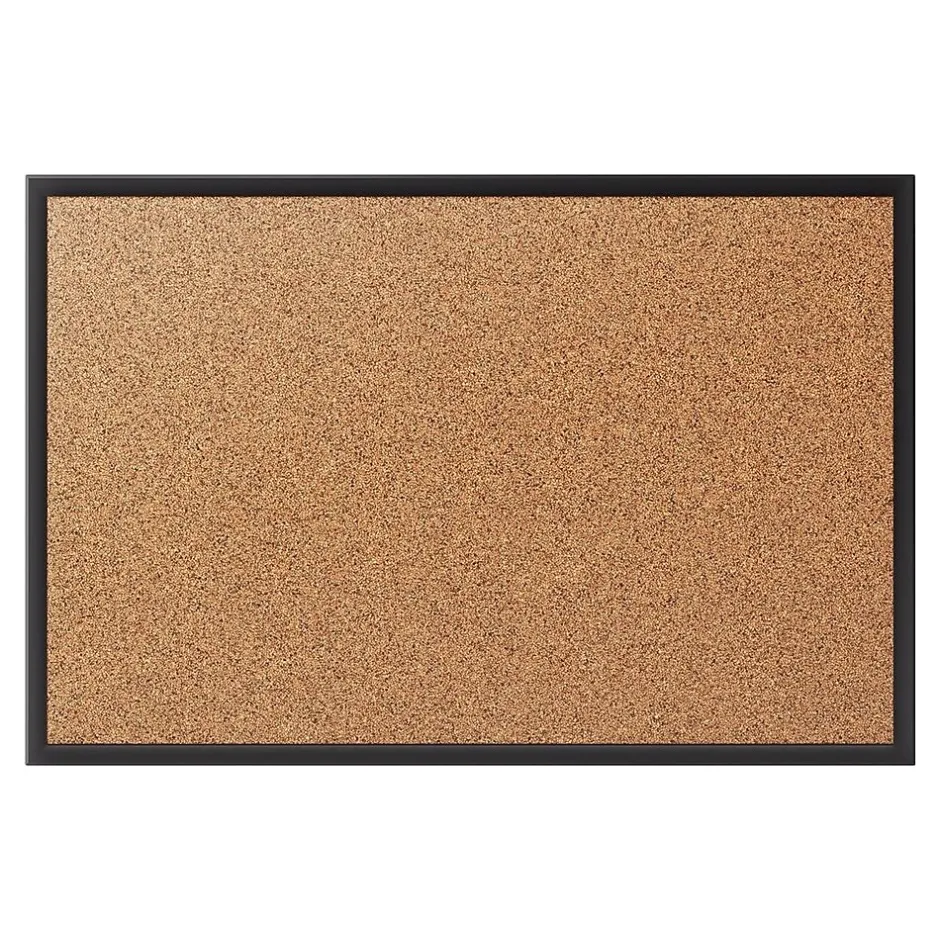 Mount this cork bulletin board anywhere a flexible display is needed. The included mounting hardware and instructions make this corkboard simple to hang so you can start posting items right away. With durable backing and a natural cork surface, this bulletin board holds strongly to pushpins and is ideal for everyday use. The black aluminum frame protects the edges and gives this Staples standard cork bulletin board a finished look.
