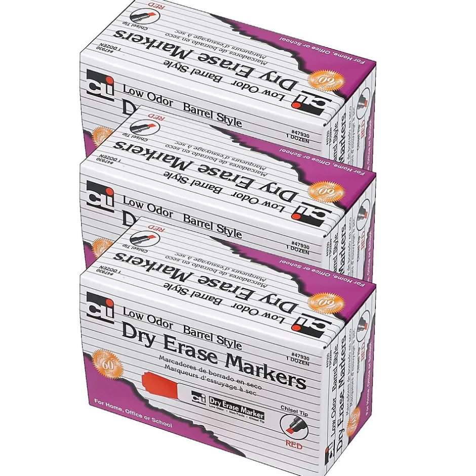 CLI Dry Erase Markers, Chisel Tip, Red, 12/Pack, 3 Packs (CHL47930-3) Outlet