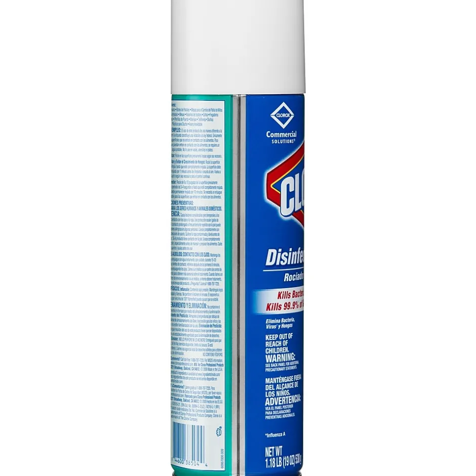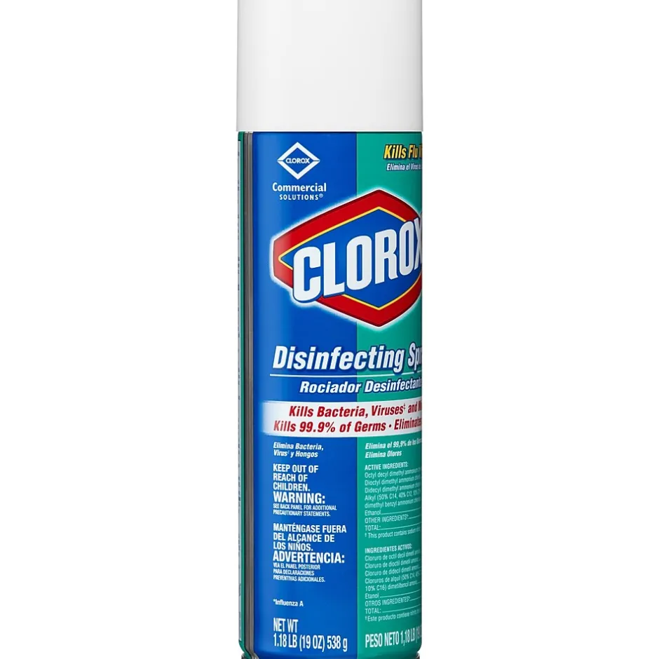Clorox® Disinfecting Spray kills relevant bacteria, viruses and fungi that can cause serious illness and infection.It is EPA-registered to kill as many as 64 microorganisms and it kills the majority of bacteria on its EPA Master Label in 3 minutes.This disinfecting spray meets EPA criteria for use against SARS-CoV-2, the virus that causes COVID-19. With incredible versatility,Clorox® Disinfecting Spray can be used on a wide variety of hard surfaces while deodorizing and actually eliminating the bacteria that cause bad odors. From Clorox Commercial Solutions®, this disinfecting spray is ideal for use in offices, day care centers, schools, busy healthcare environments and other commercial facilities.