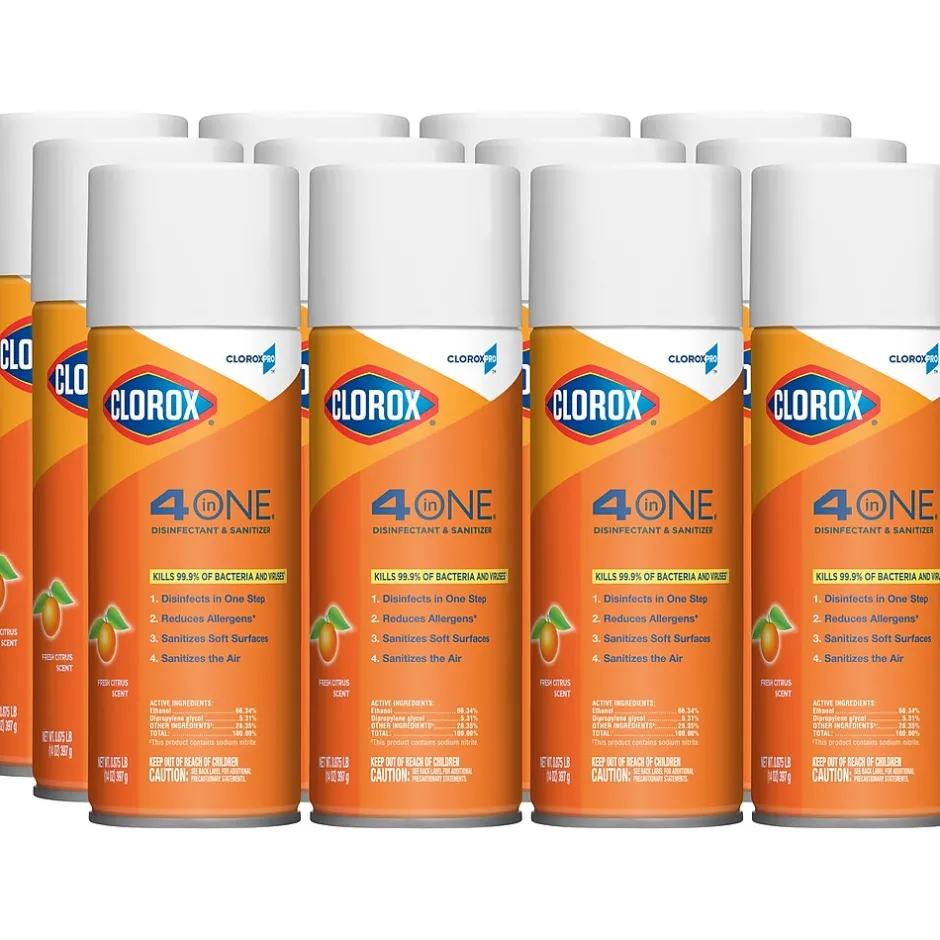 To help keep living and working environments healthy, it’s important to clean and disinfect multiple surfaces, a process that once required multiple products. Clorox® 4 in One Disinfectant & Sanitizer lets you disinfect, sanitize and reduce allergens with a single all-purpose aerosol spray. This powerful cleaner disinfects hard surfaces with 24 EPA-registered kill claims, and sanitizes soft surfaces in as little as 30 seconds. It meets EPA criteria for use against SARS-CoV-2, the virus that causes COVID-19. This disinfecting spray even kills odor-causing bacteria in the air, and leaves behind a refreshing scent. On top of that, Clorox® 4 in One reduces pet dander, dust mite matter and cockroach matter allergens which can trigger allergies and asthma. Ideal for offices, day care centers, schools, hotels, restaurants and other commercial facilities. No precleaning required. CloroxPro™, where clean means everything.