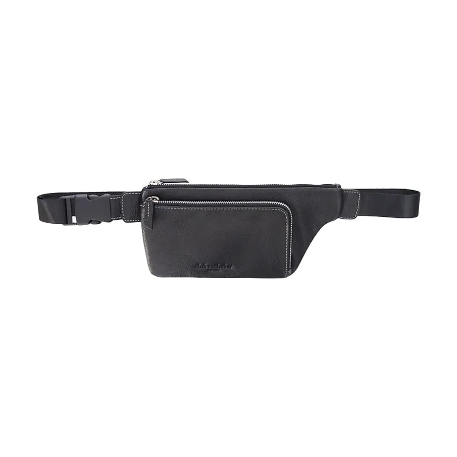 Designed for comfort, this multipurpose double-zipper belt bag with cardholder by Club Rochelier is stylish yet durable. Fabricated in genuine leather and features quality zippers, an adjustable nylon strap, and a quick-release buckle. The main pocket is large enough to carry your cell phone, keys, pen, charger, and other necessities. The front zipper pocket has six credit card slots. Great for jogging, biking, travel, hiking, and all kinds of outdoor activities and daily use.