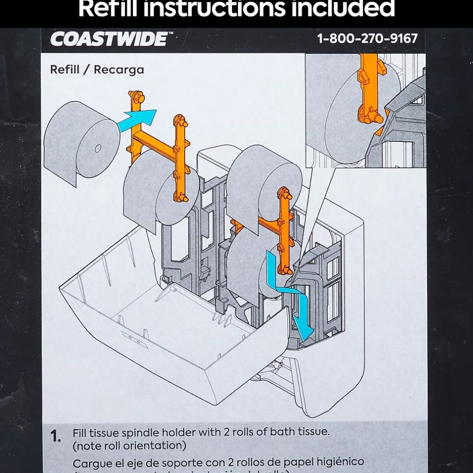 - Once the bottom roll is fully dispensed, the top roll automatically drops to provide users with continuous service